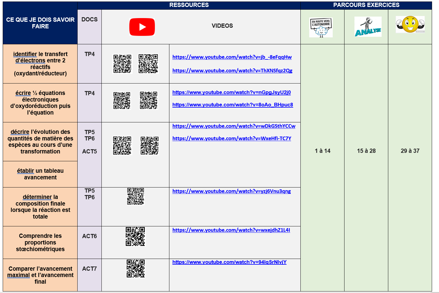 ACTIVITE 5 : Tableaux d'avancement